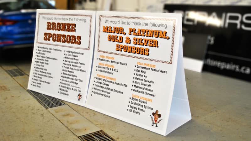 Coroplast is a very cost effective way to get your message across. This is a great way for a new business to save some money but still be able to display professional looking signs. The benefits of these are that they are very lightweight, making them easy to transport. They also have flutes in them, which can be used to put onto metal stakes. Stands can be made for the back of the sign, which can be weighed down with sandbags so they can be used outside without having to worry your sign will blow away.