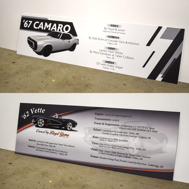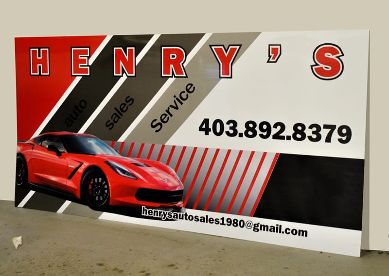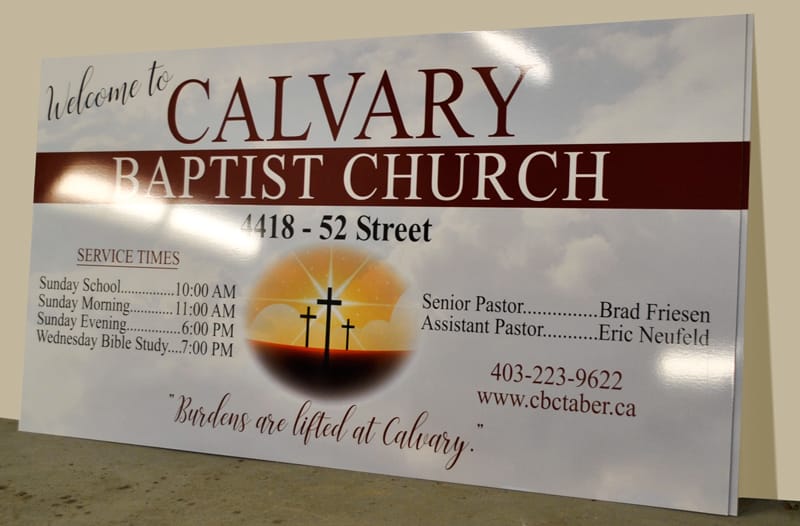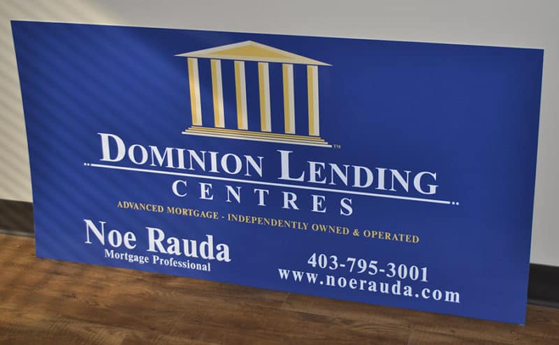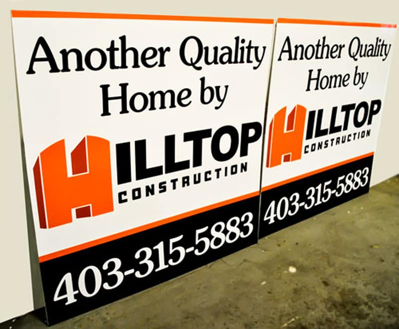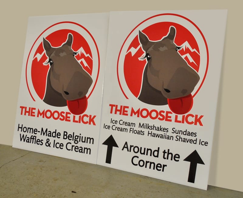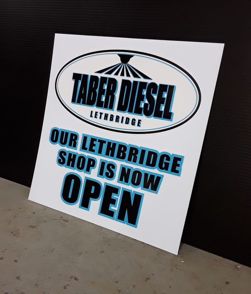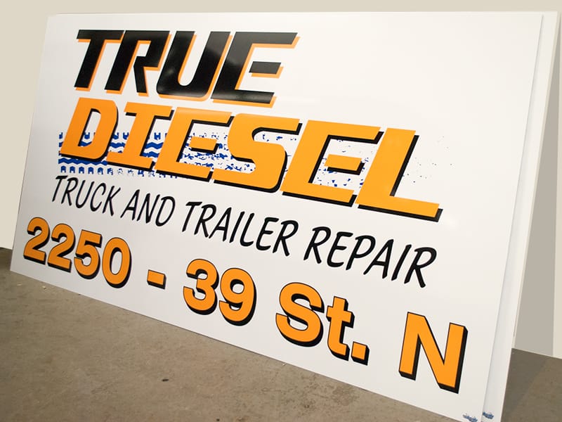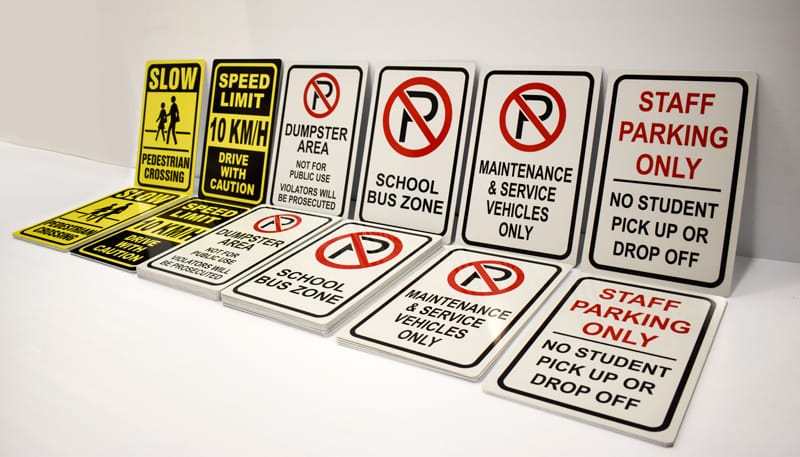 Alupanel is made up of 2 thin sheets of aluminum with a dense foam core. Because of this, it is much cheaper than straight aluminum, but is just as durable. We use alupanel instead of wood signs – which can rot and deteriorate over time. Typically, they are used as a longer term solution for a store front building sign, a highway sign, or a parking sign, but have many other uses. Cut vinyl or full colour print with images is available.