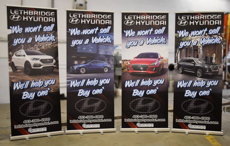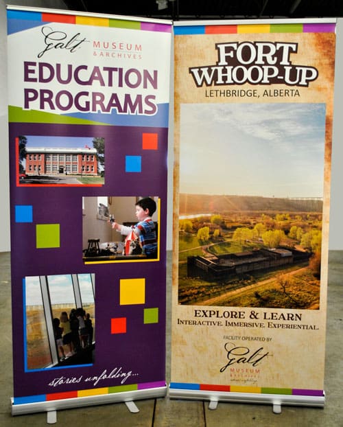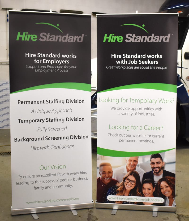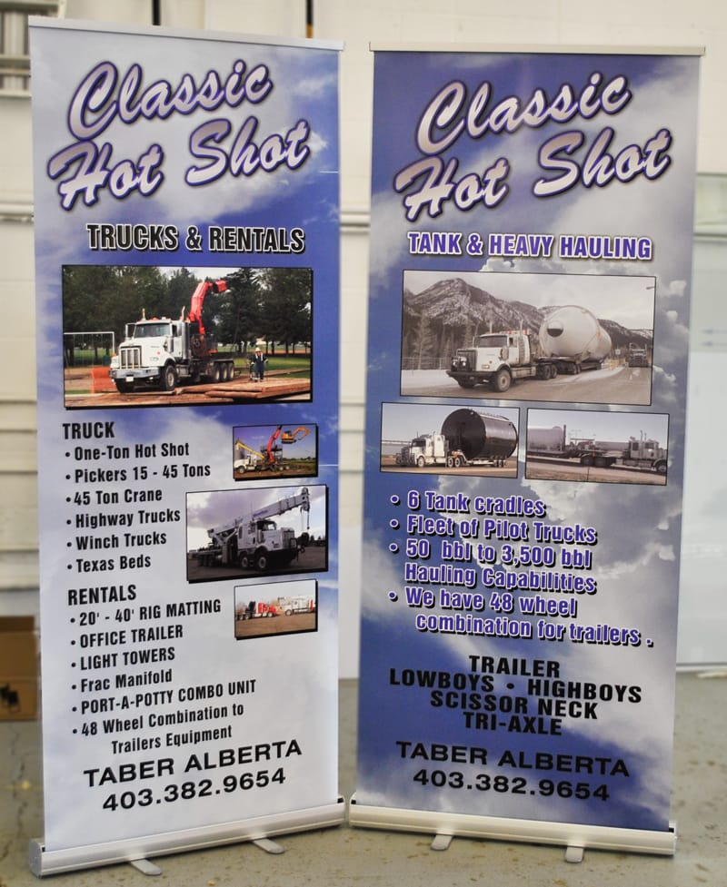 Banners have many uses, and can be transported easily and used over and over again. We currently sell stand-up banner stands, and trade show displays of all sizes. Plus, the banner material is removable, so the stand is easily re-usable. We not only print banners, but we can make ones with cut vinyl as well – meaning you can use the same banner and just change the lettering the suit you needs.